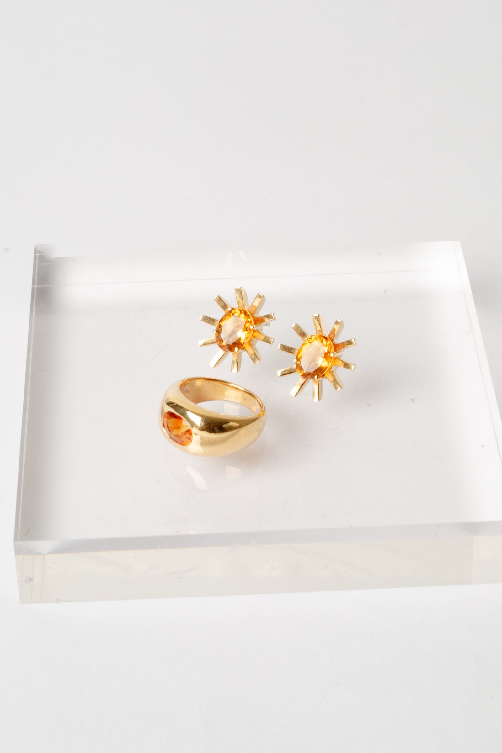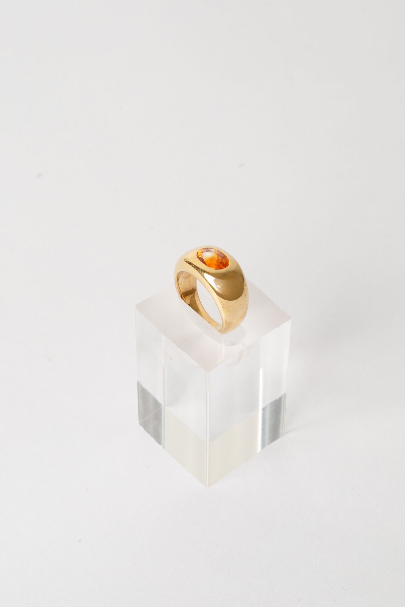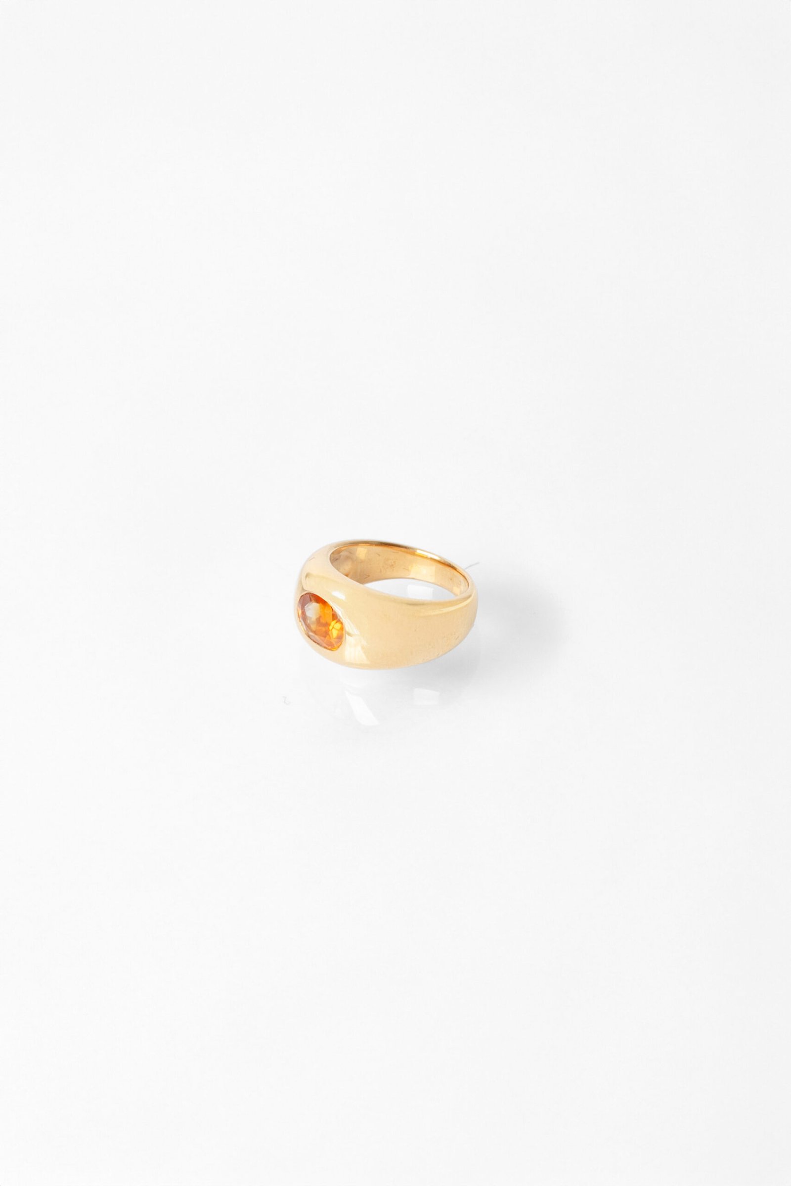 Anel de prata para usar no dedo mínimo, com citrino em lapidação facetada, banhado a ouro 18k.