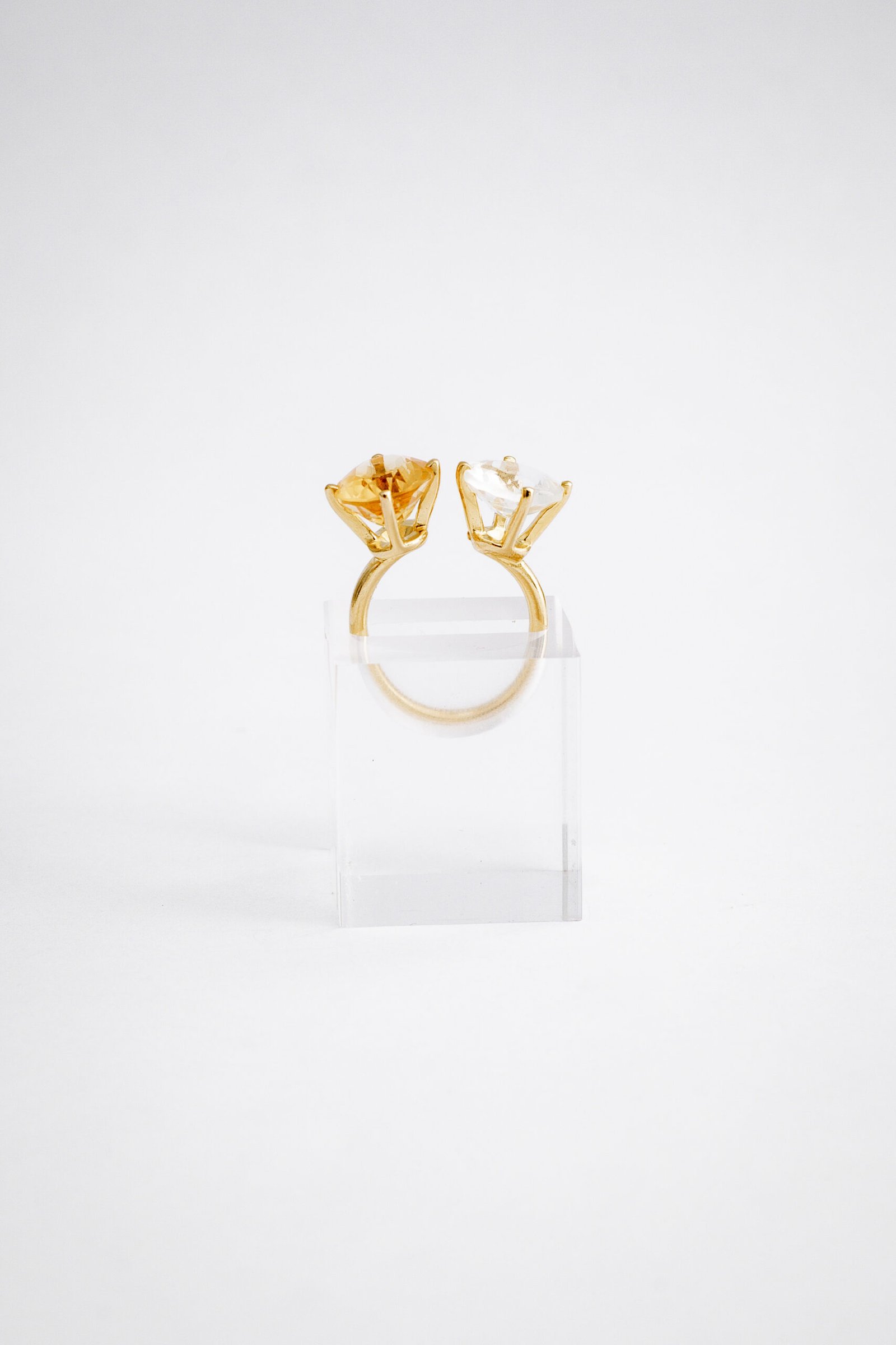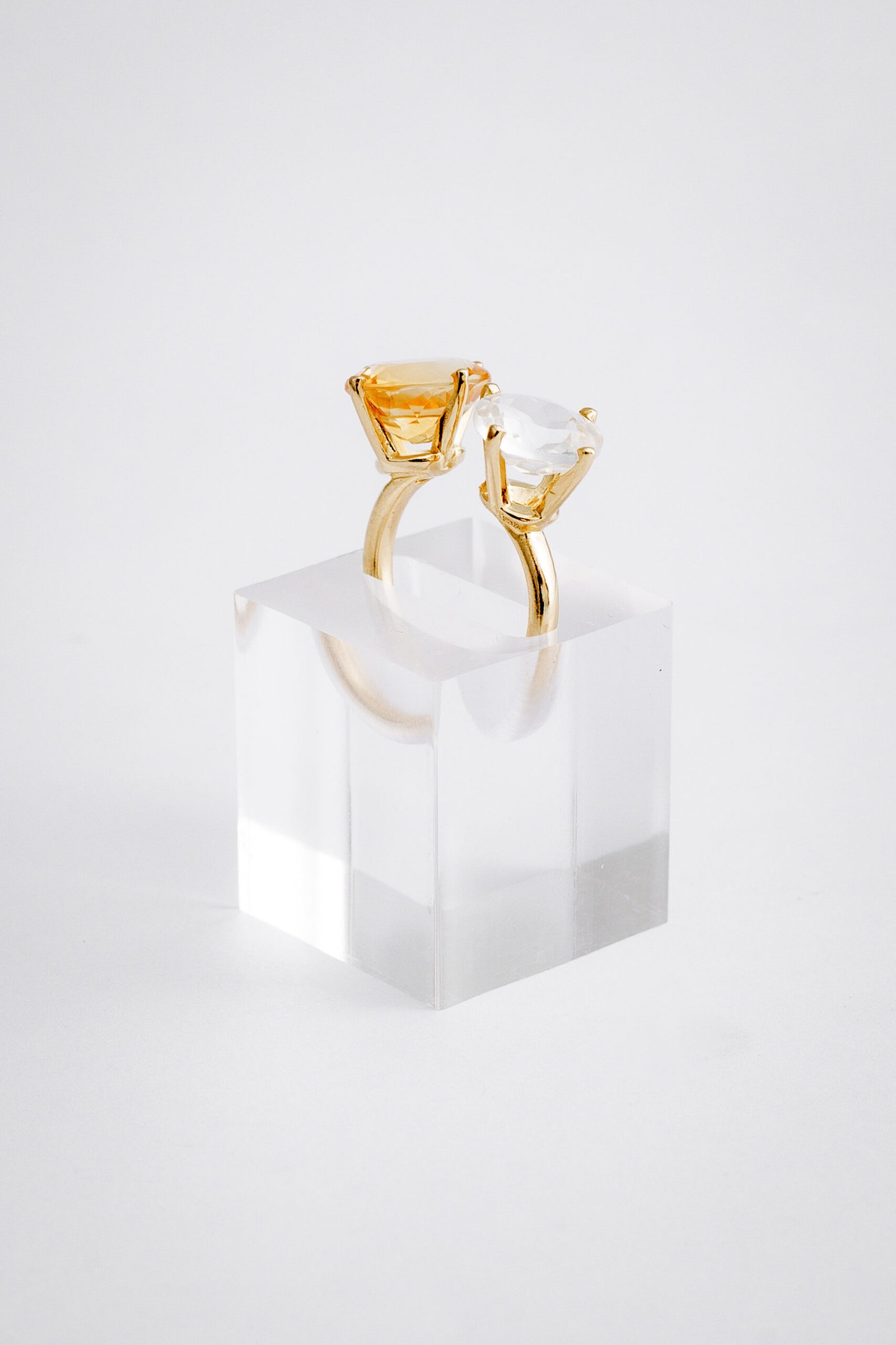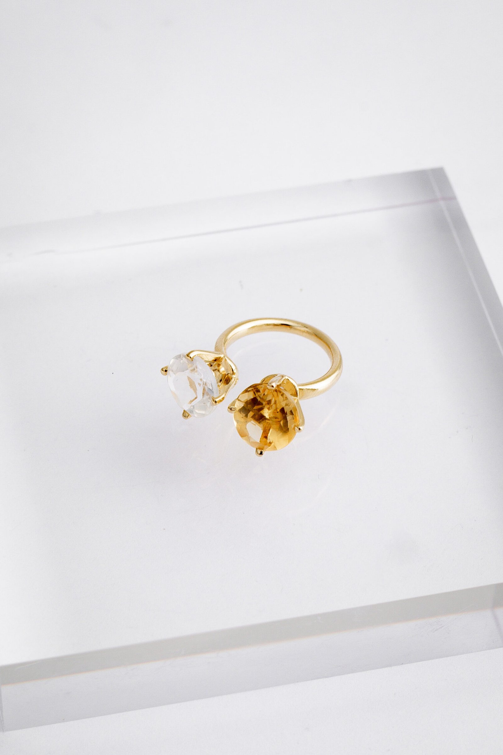 Anel de Prata com cristal e citrino, banhado a Ouro 18k.