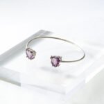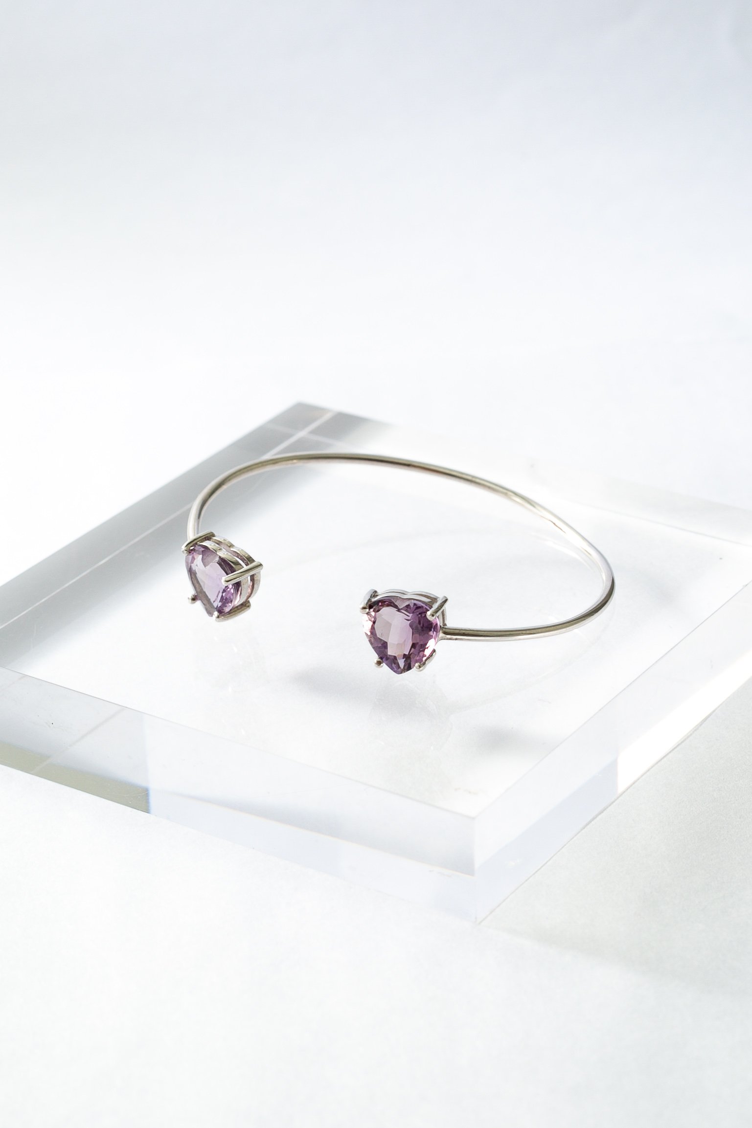 Bracelete de Prata com ametista, em lapidação facetada, banhado no Ródio.