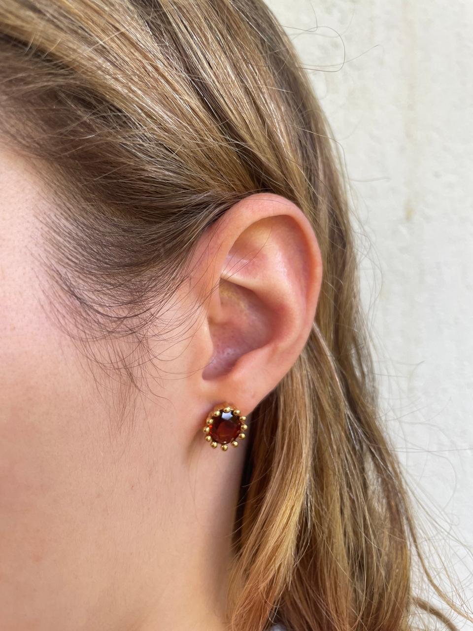Brinco de Prata com Citrino Rio Grande, em lapidação facetada, banhado a Ouro 18k.