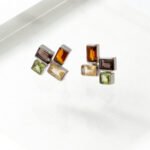 Brinco de Prata com Quartzo fumê, Citrino Rio Grande, Citrino e Peridoto, em lapidação facetada, banhado a Ródio.
