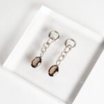 Brinco de Prata com Quartzo-fumê, em lapidação facetada, banhado no Ródio.