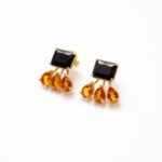 Brinco de prata com ônix e citrino rio grande, em lapidação facetada, banhado a Ouro 18k.