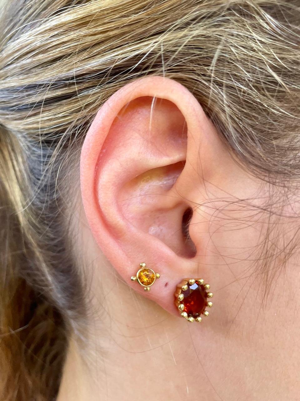 Brinco de prata, para uso como piercing ou segundo furo, vendido avulso. Pedra citrino em lapidação facetada e banhado a ouro 18k.