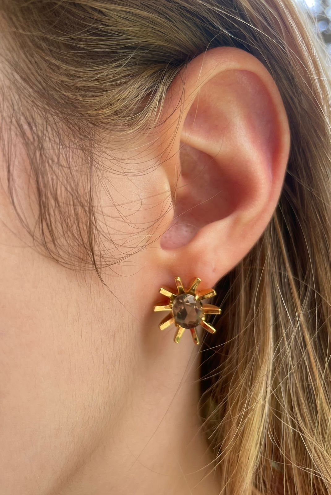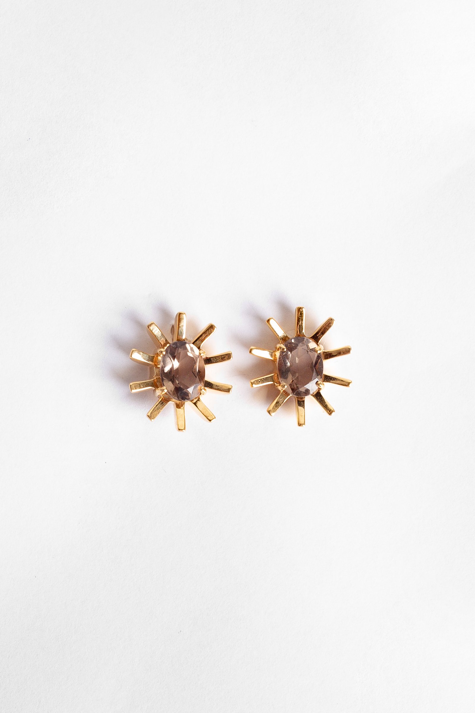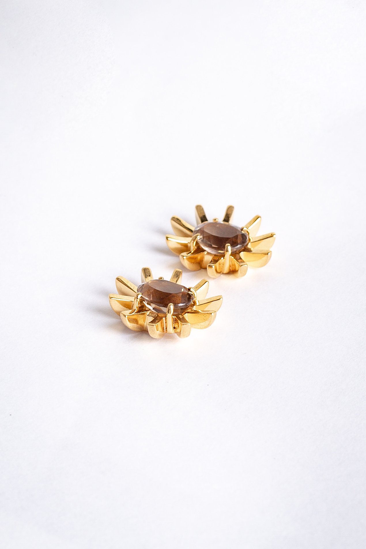 Brinco de Prata com Quartzo fumê, em lapidação facetada, banhado a Ouro 18k.