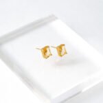 Brinco de Prata com citrino, em lapidação facetada, banhado a Ouro 18k.