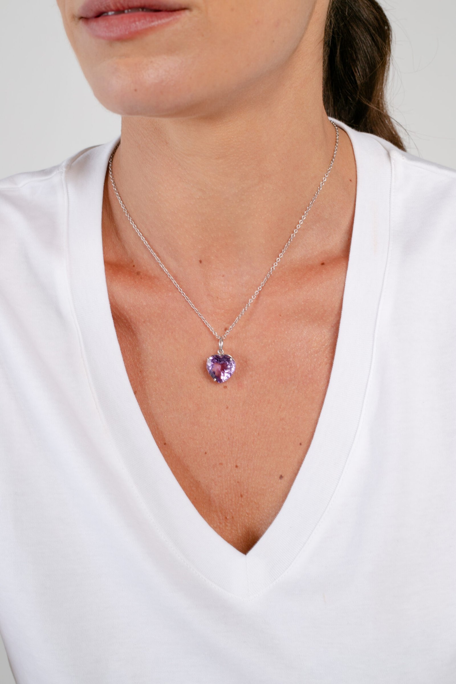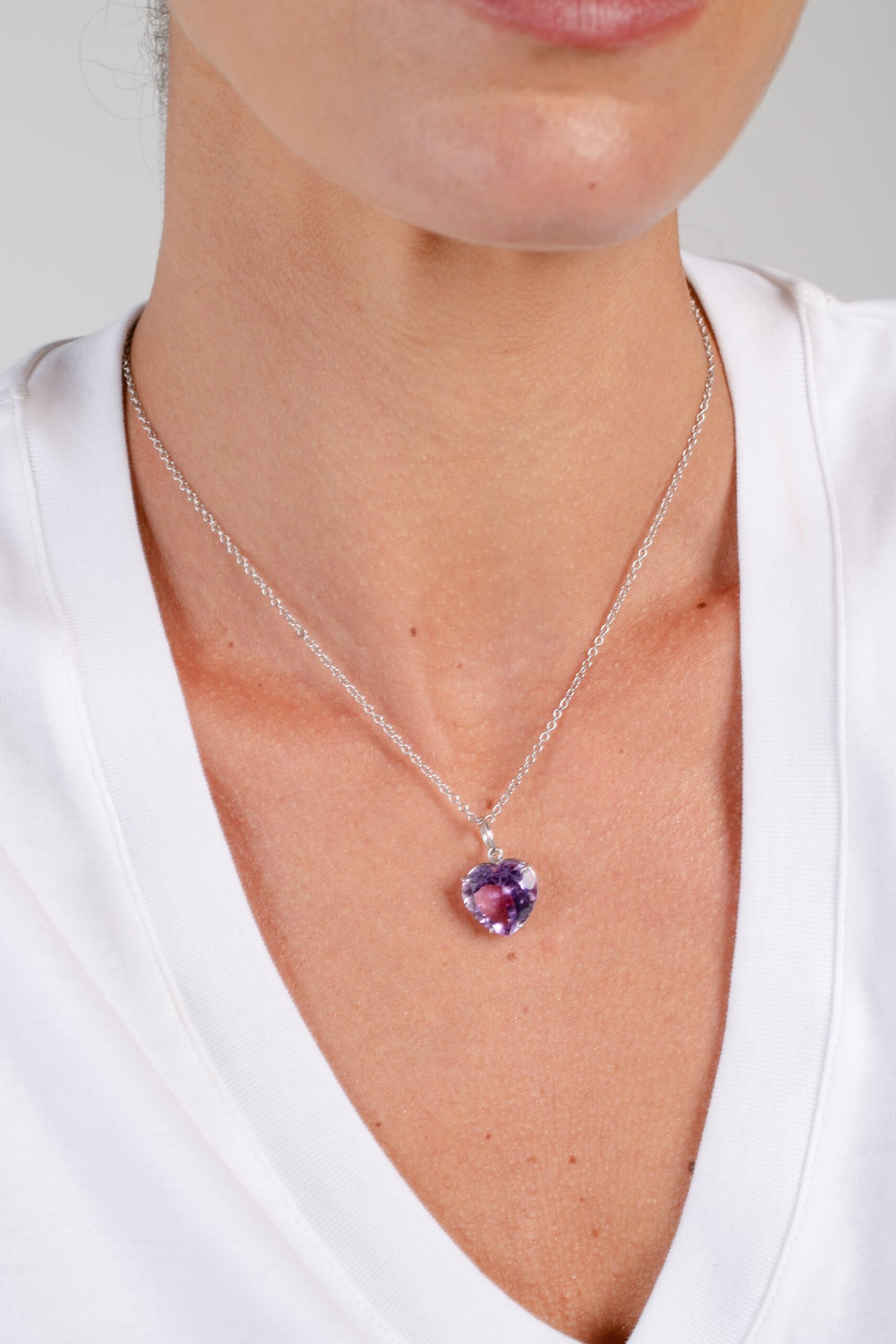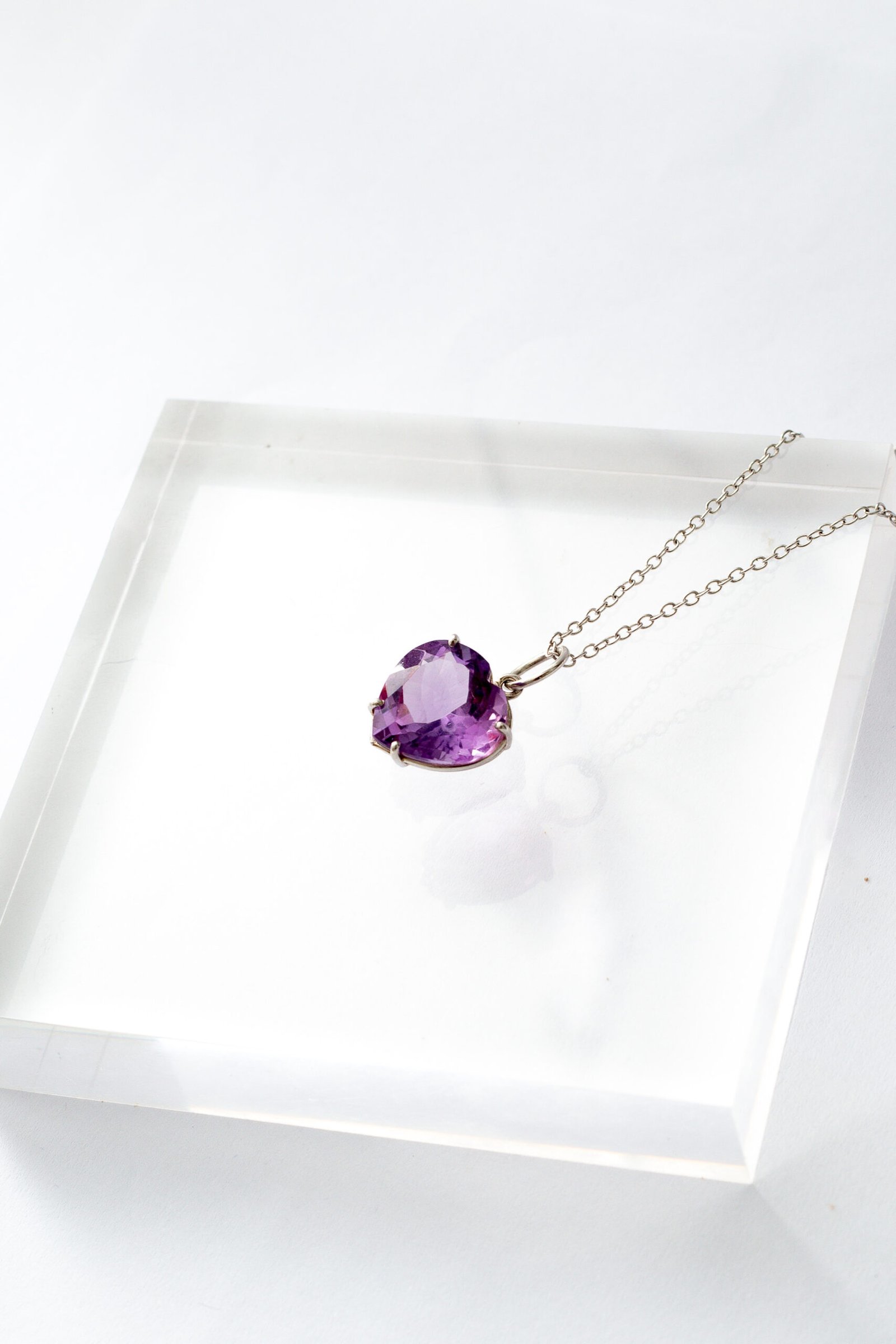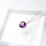 Colar de Prata com ametista, em lapidação facetada, banhado no Ródio.