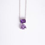 Colar de prata com ametista, em lapidação facetada, banhado no Ródio.