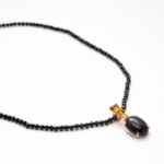 Colar curto de espinélio com pingente Joy de ônix, citrino e citrino rio grande, banhado no Ouro 18k.