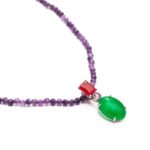 Colar curto de ametista com pingente Joy de jade malásia, ametista e jade vermelha.