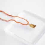Colar de pedra do sol curto, com pingente de citrino retangular, banhado a Ouro 18k.