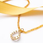 Colar de Citrino longo, com pingente de Cristal, banhado a Ouro 18k.