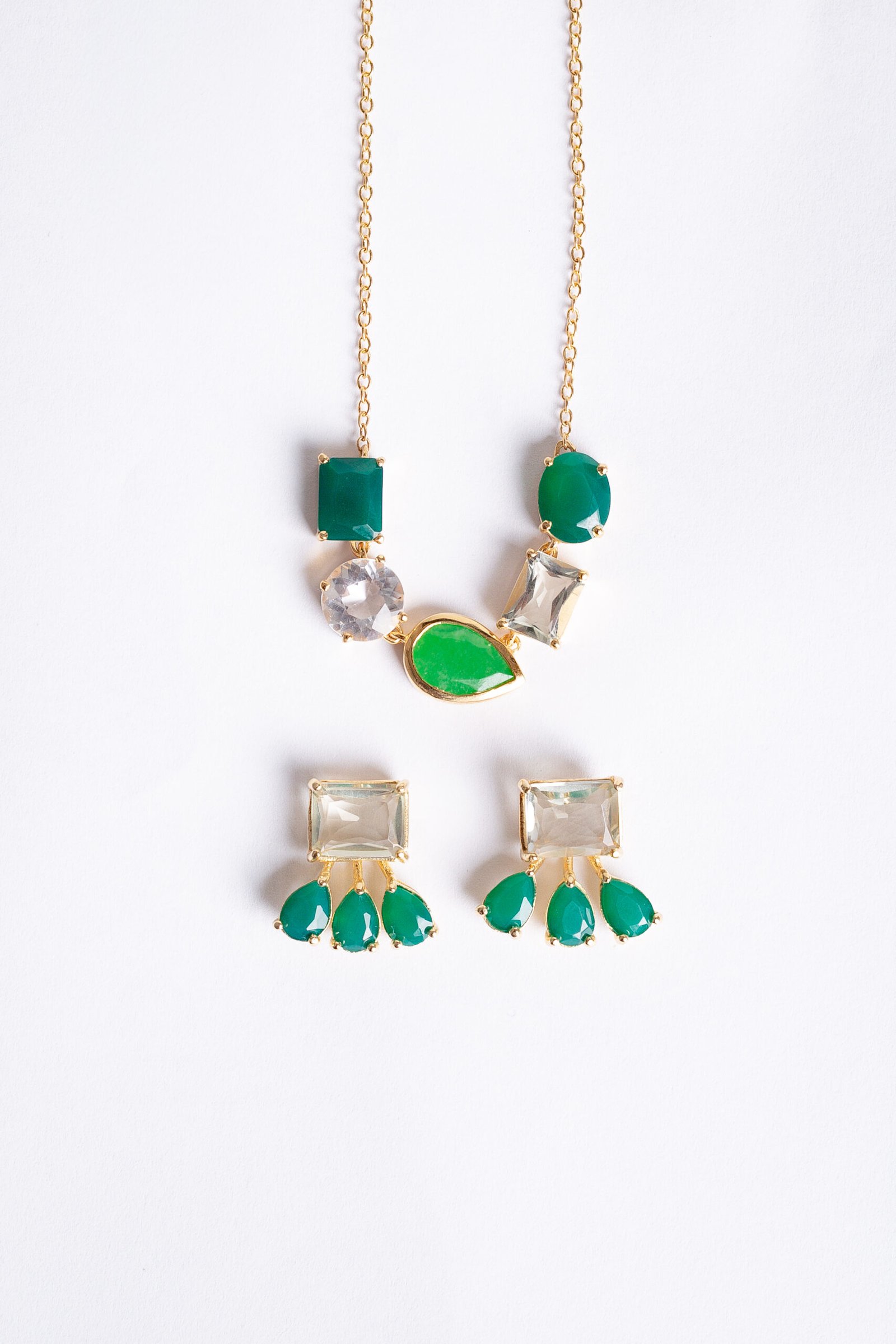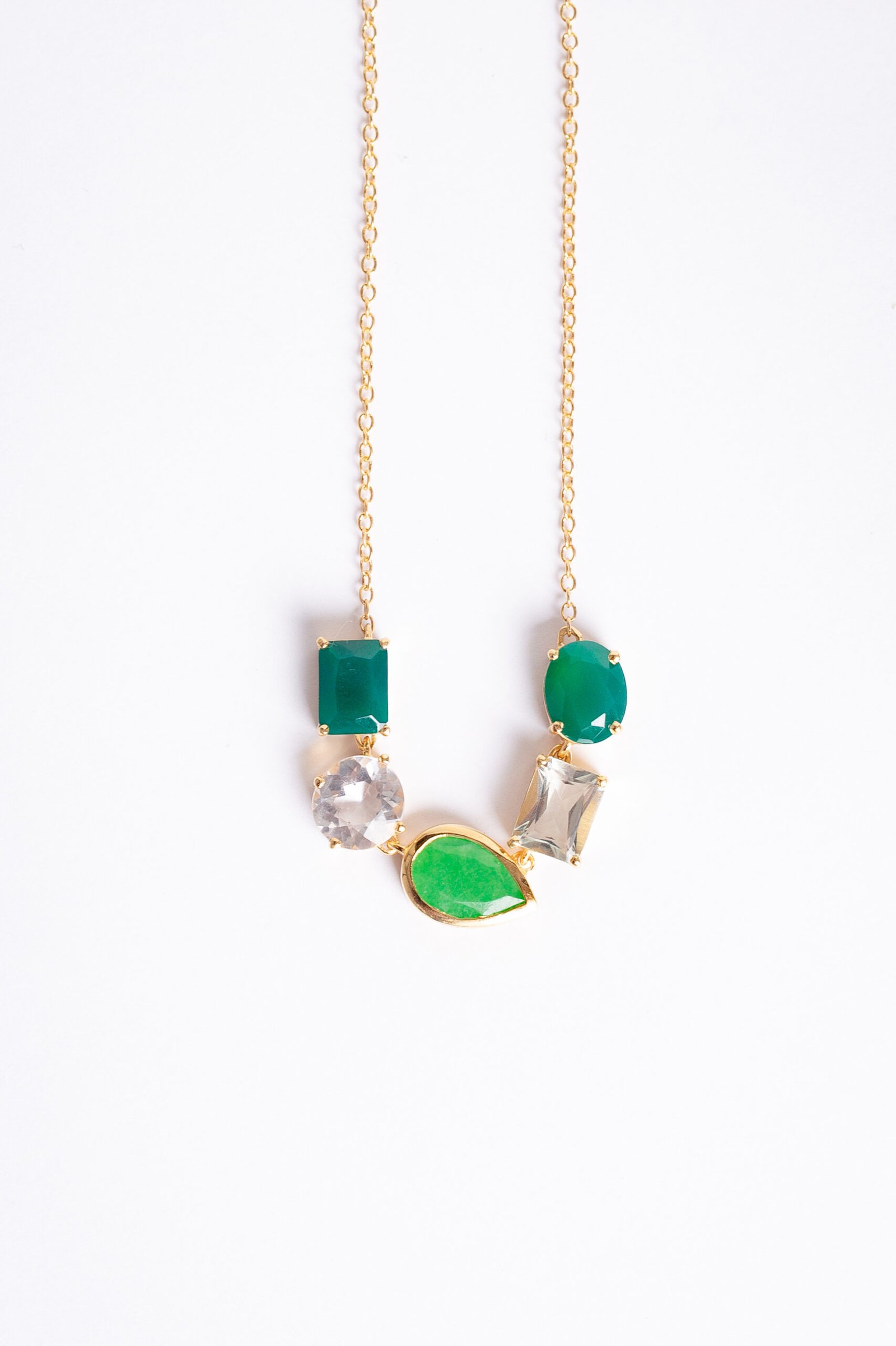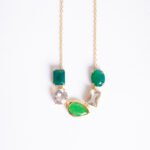 Colar de prata, com Cristal, Crisoprásio, Jade Malásia e Prasiolita, banhado a Ouro 18k.