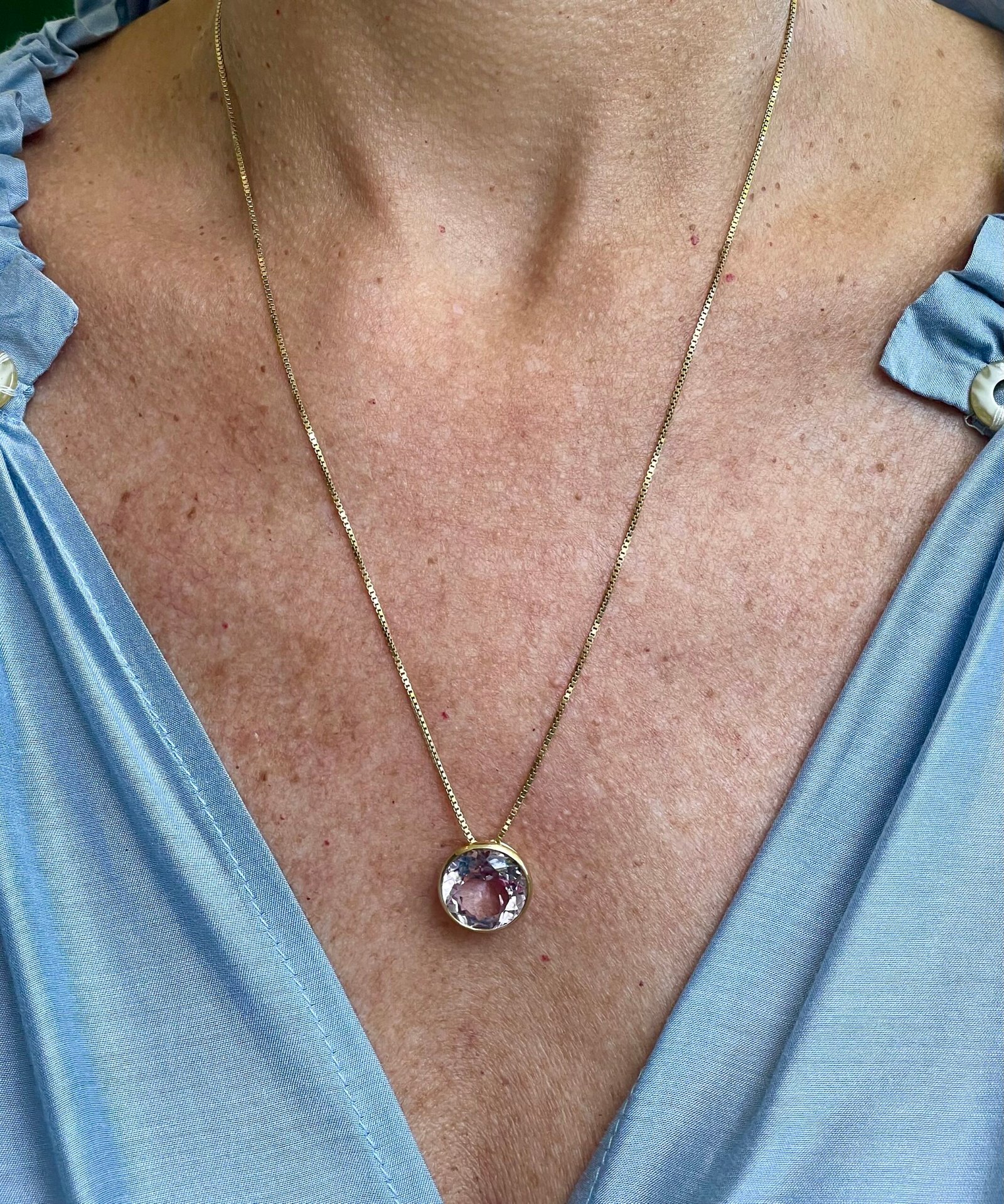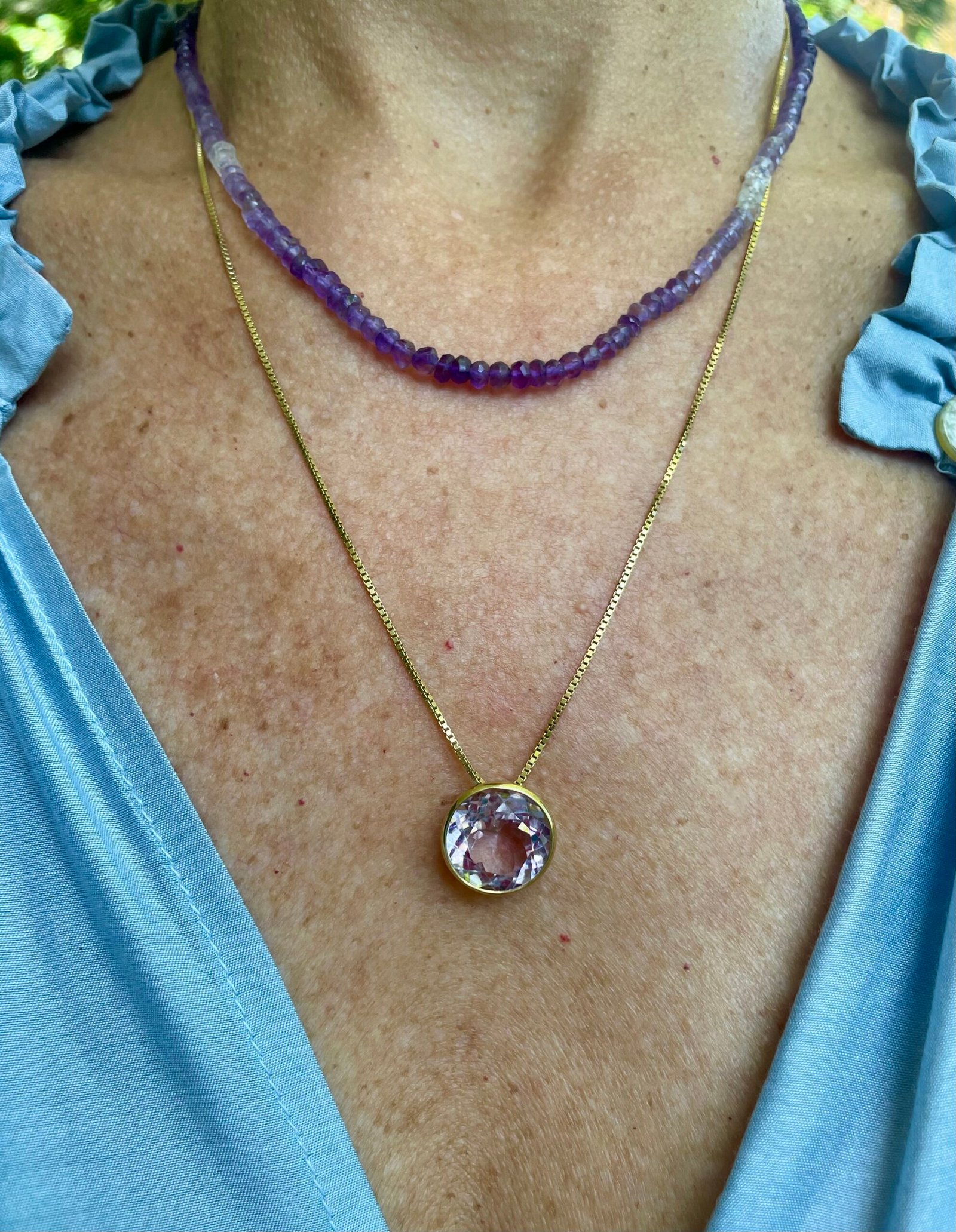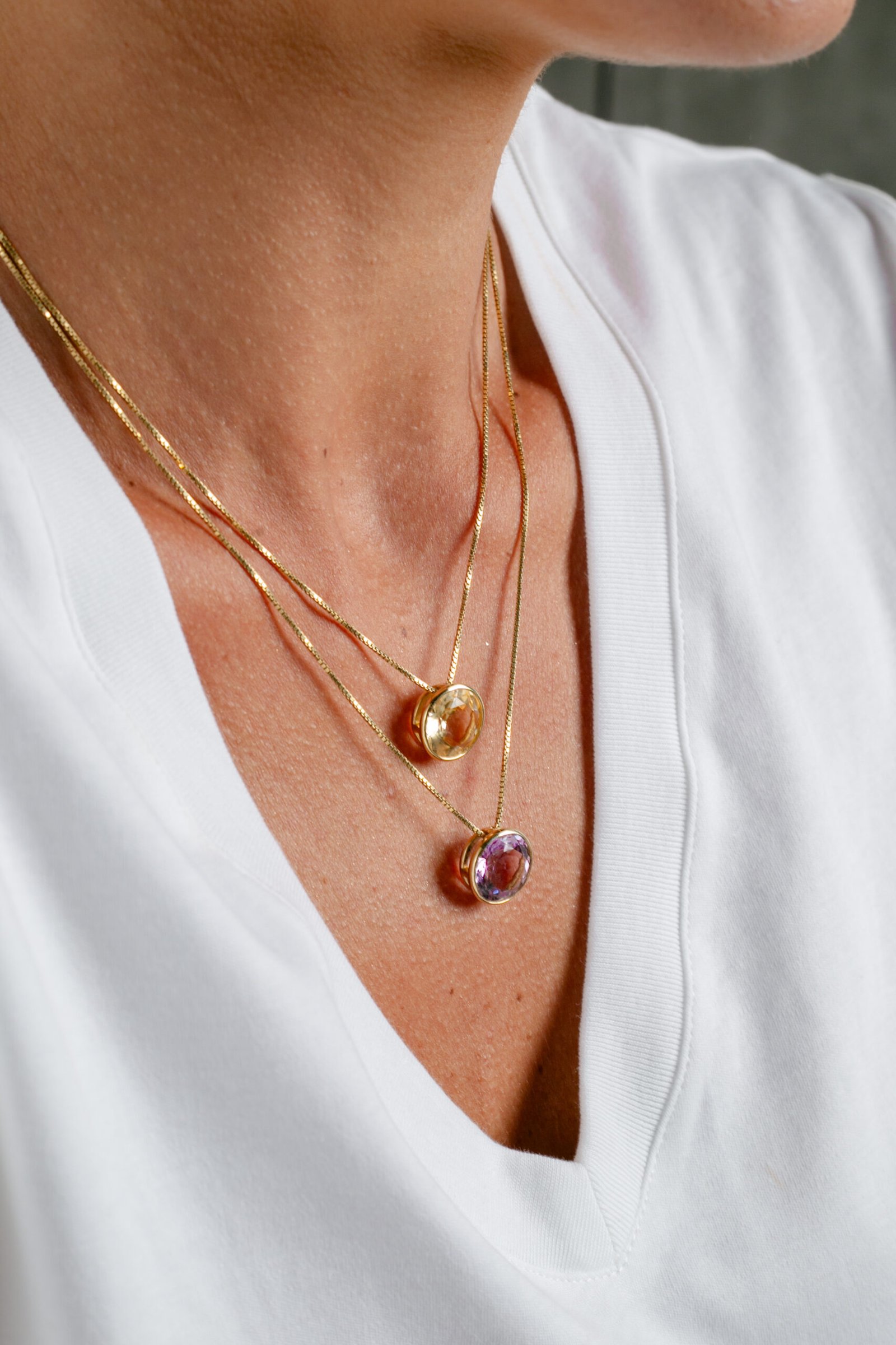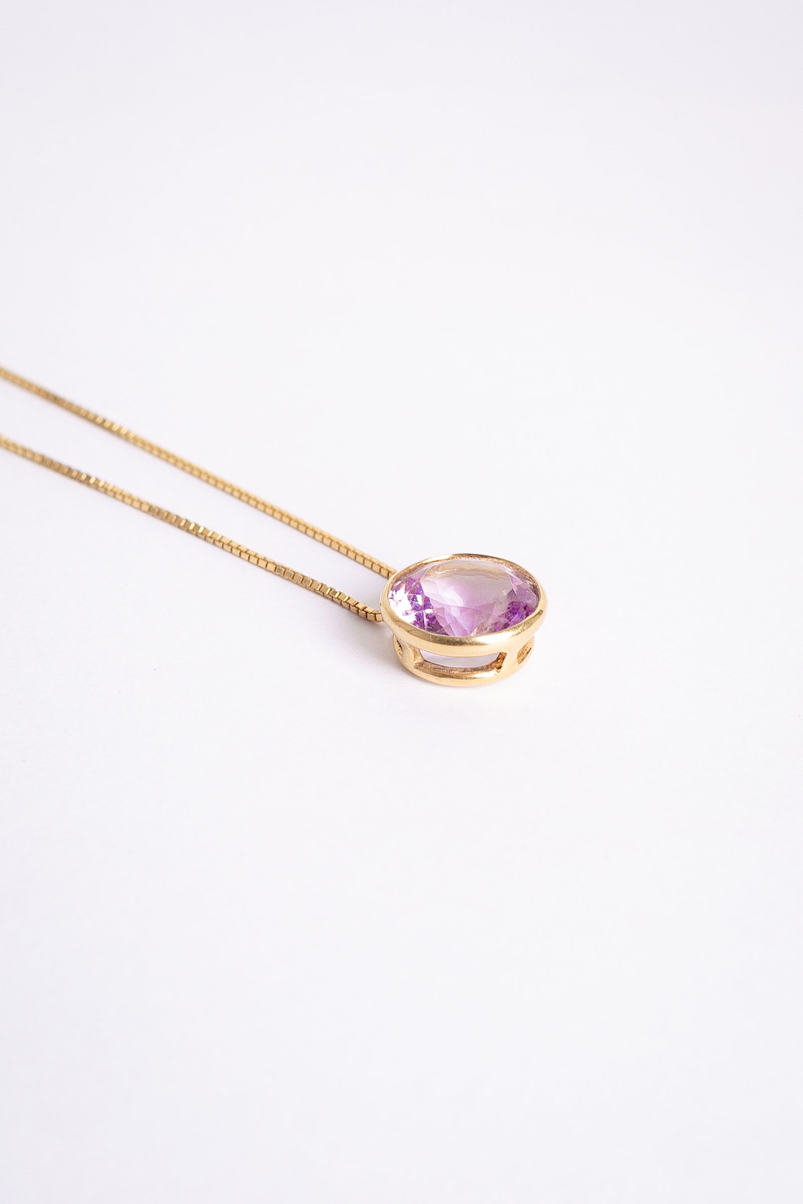 Colar de Prata, com Ametista, banhado a Ouro 18k.