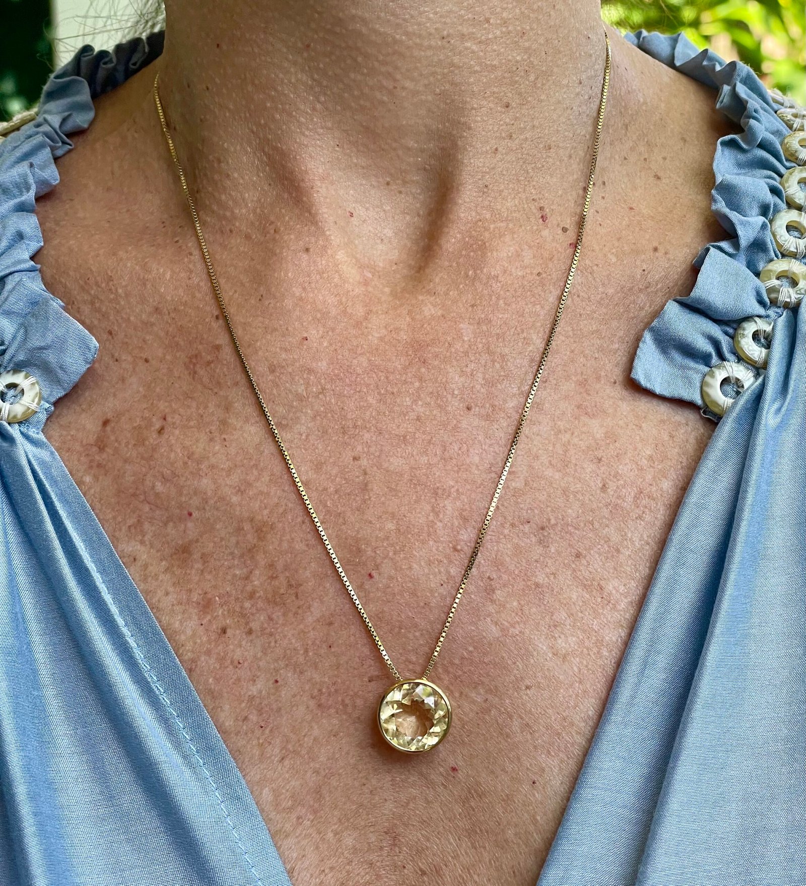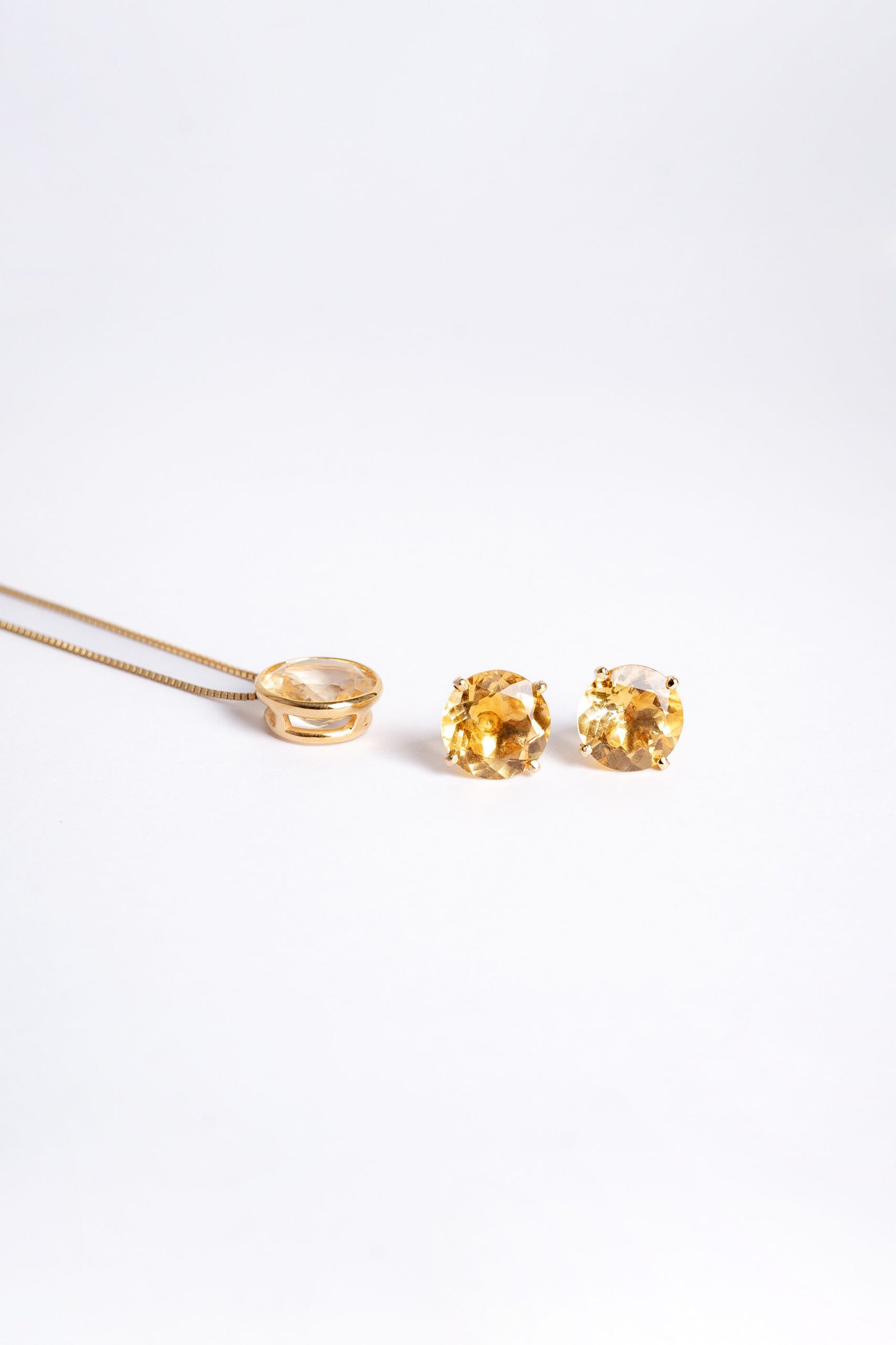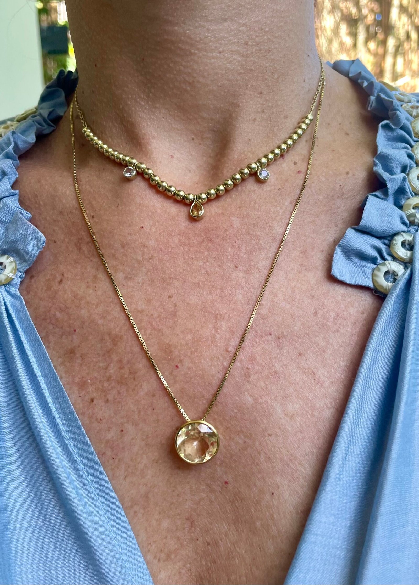 Colar de Prata com Citrino, banhado a Ouro 18k.