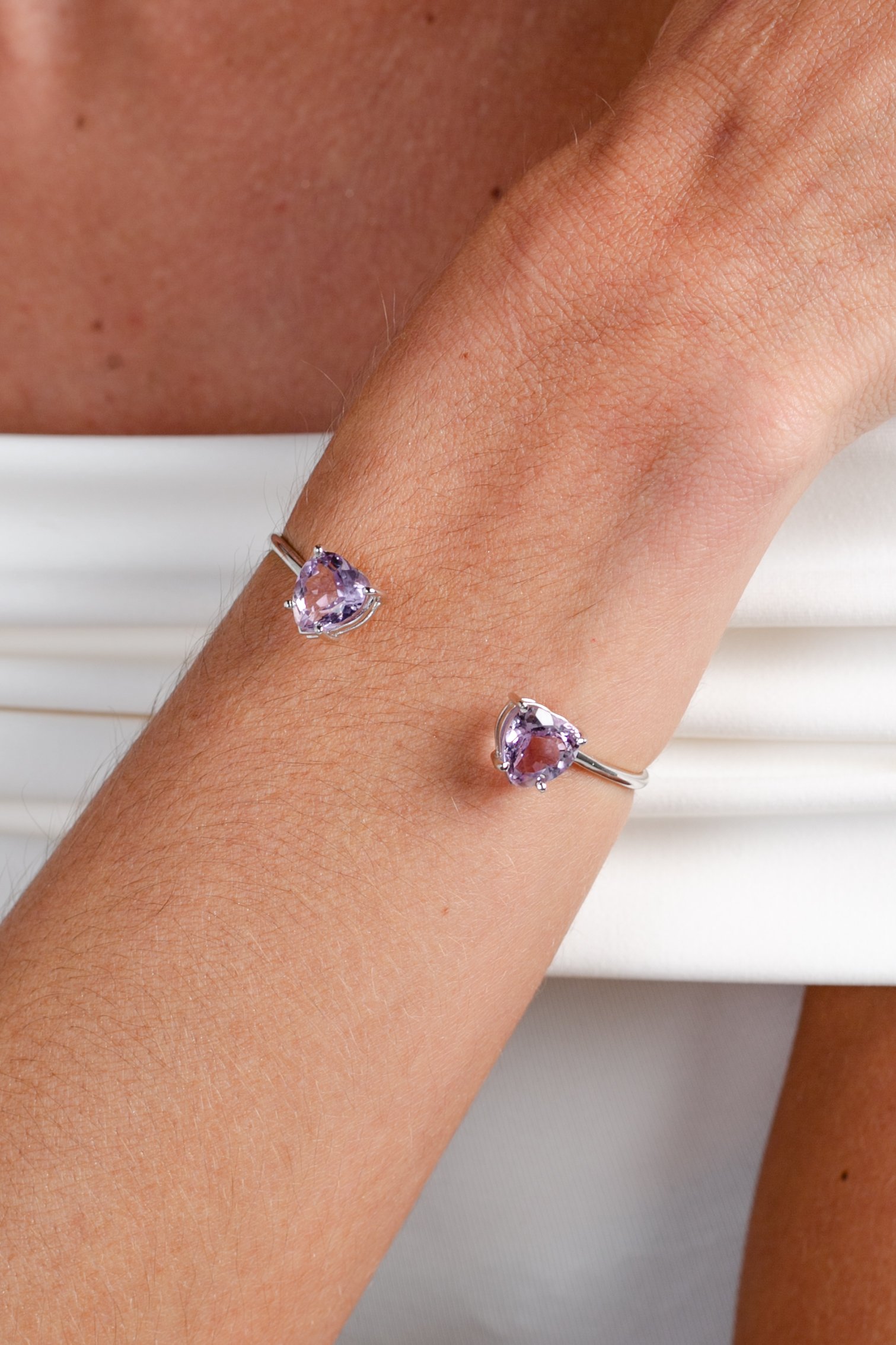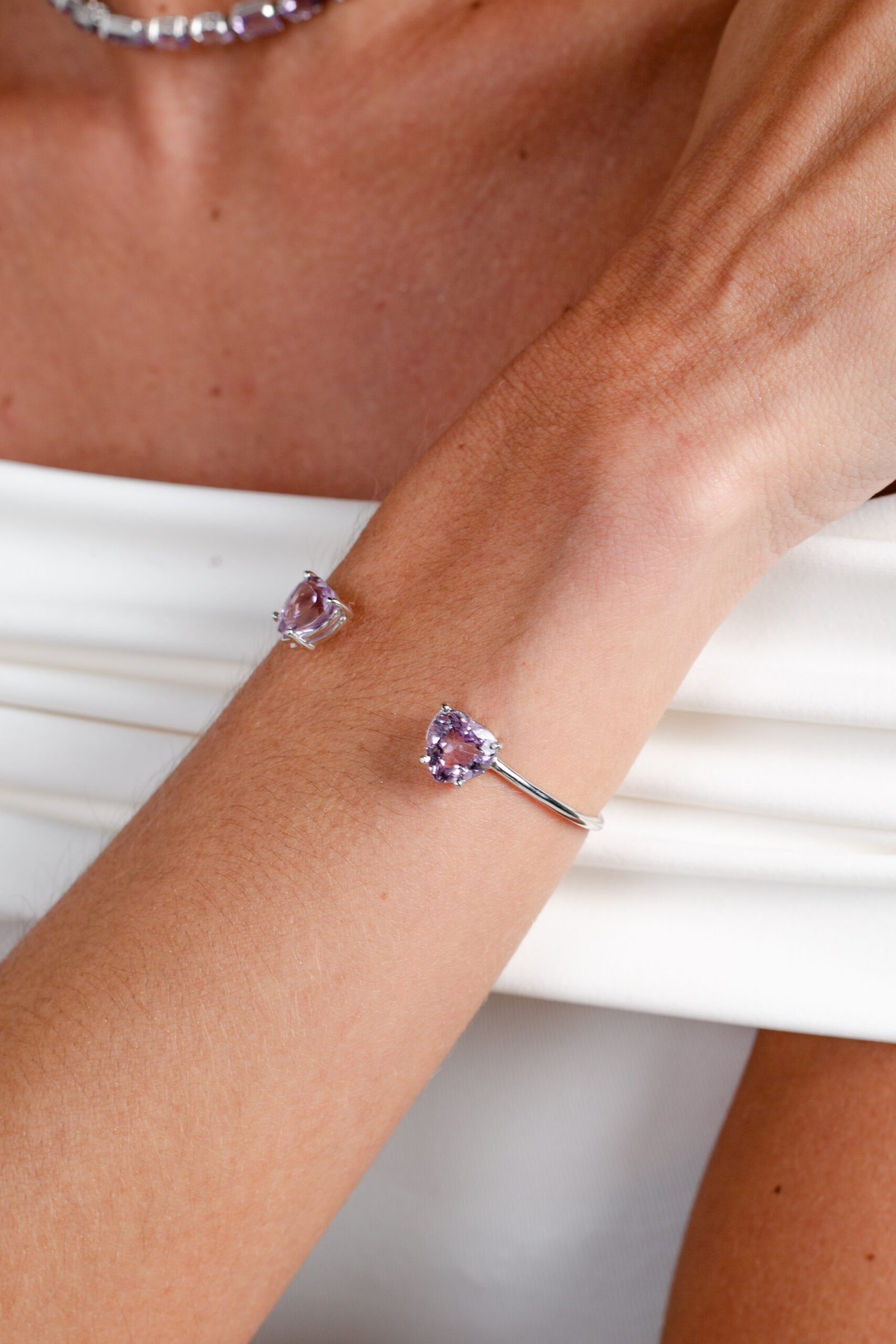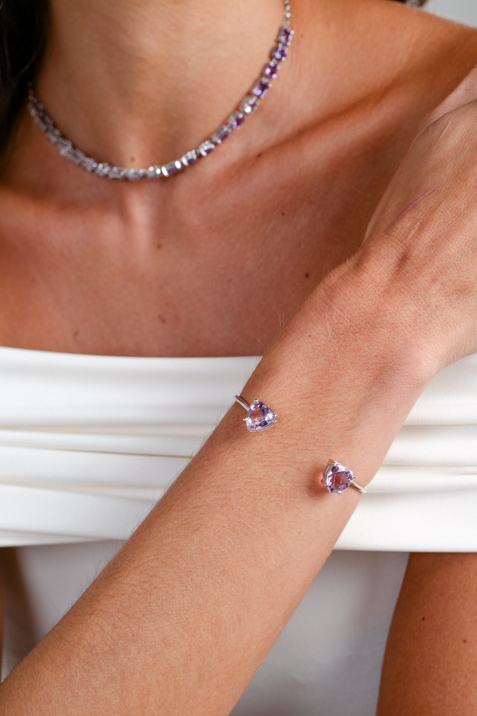 Bracelete de Prata com Ametista, banhado a Ródio.