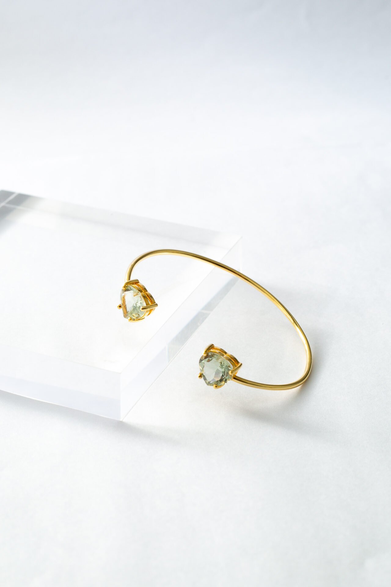 Bracelete de Prata com Prasiolita, banhado a Ouro 18k.