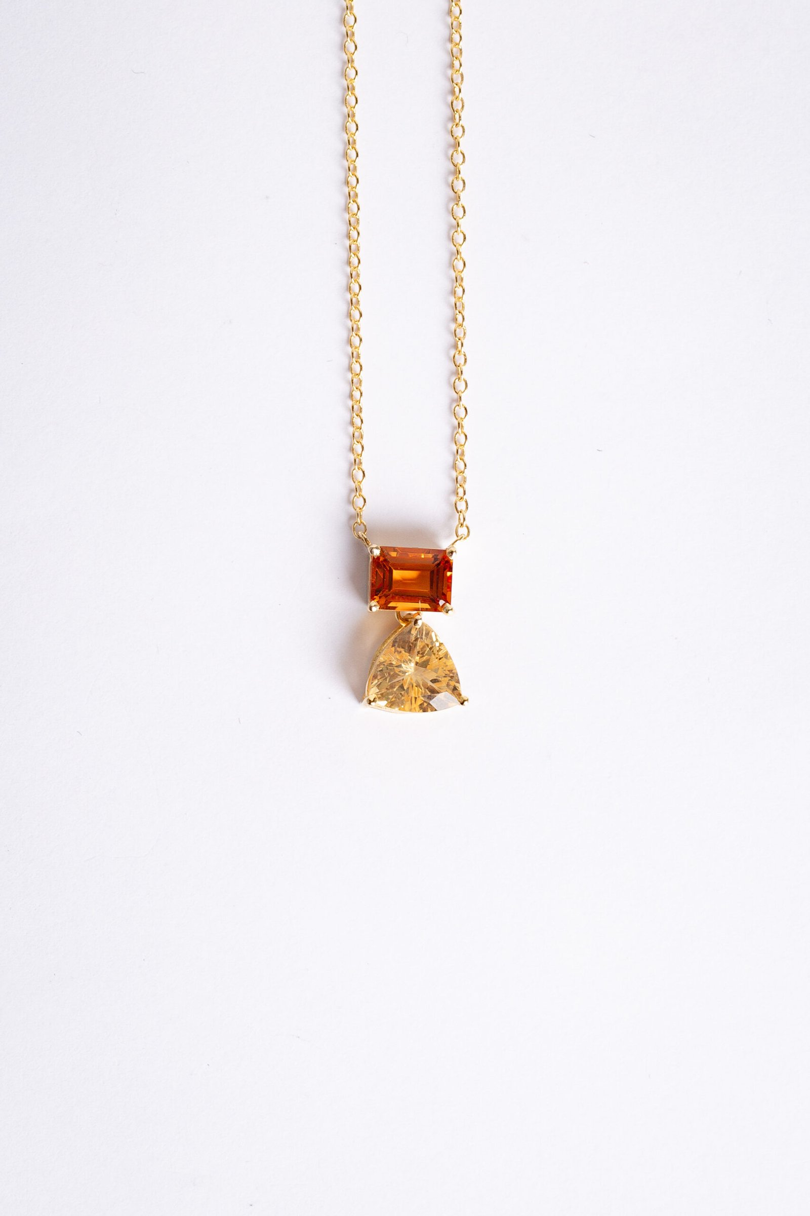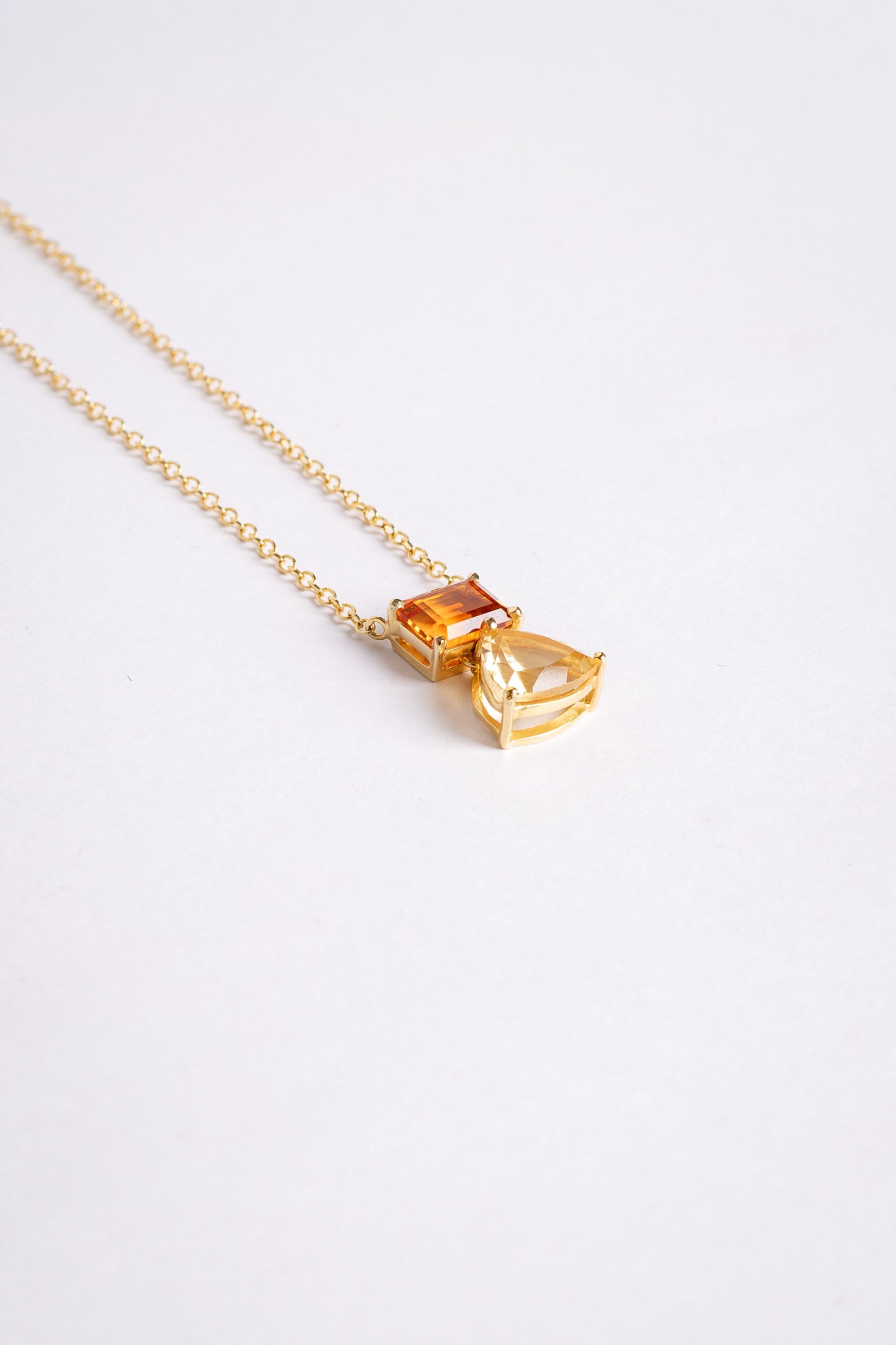 Colar de Prata com Citrino Rio Grande e Citrino, em lapidação facetada, banhado no Ouro 18k.