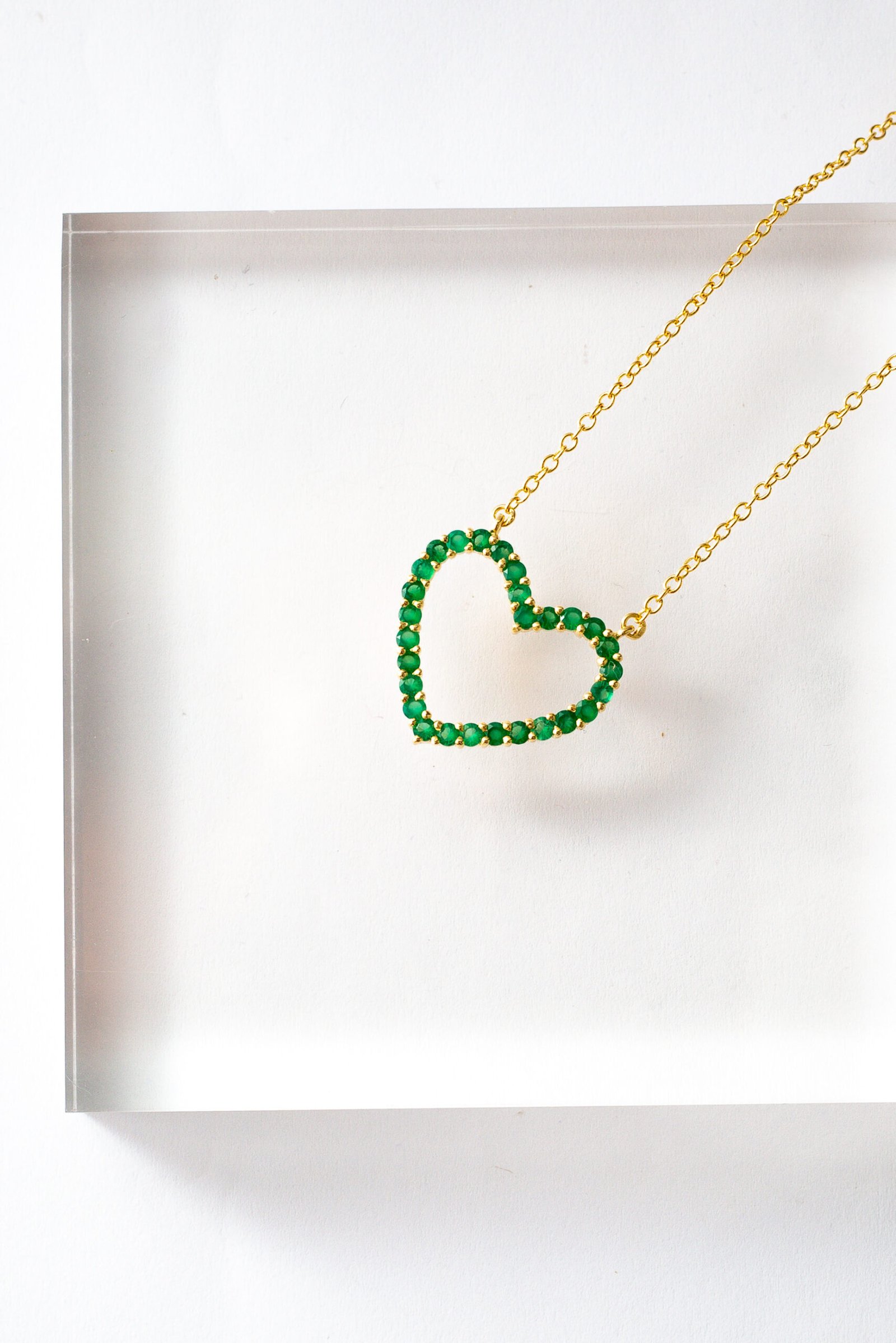 Colar de Prata com Crisoprásio, banhado no Ouro 18k.