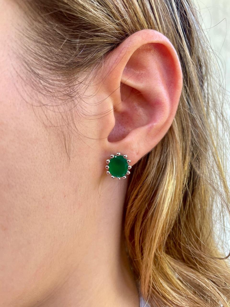 Brinco de Prata com Crisoprásio, banhado no Ródio.