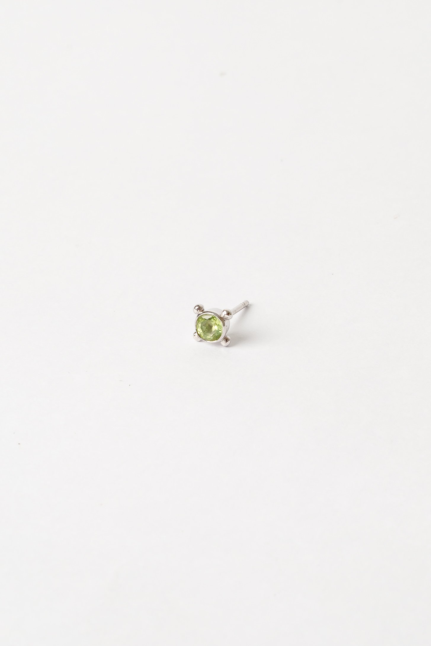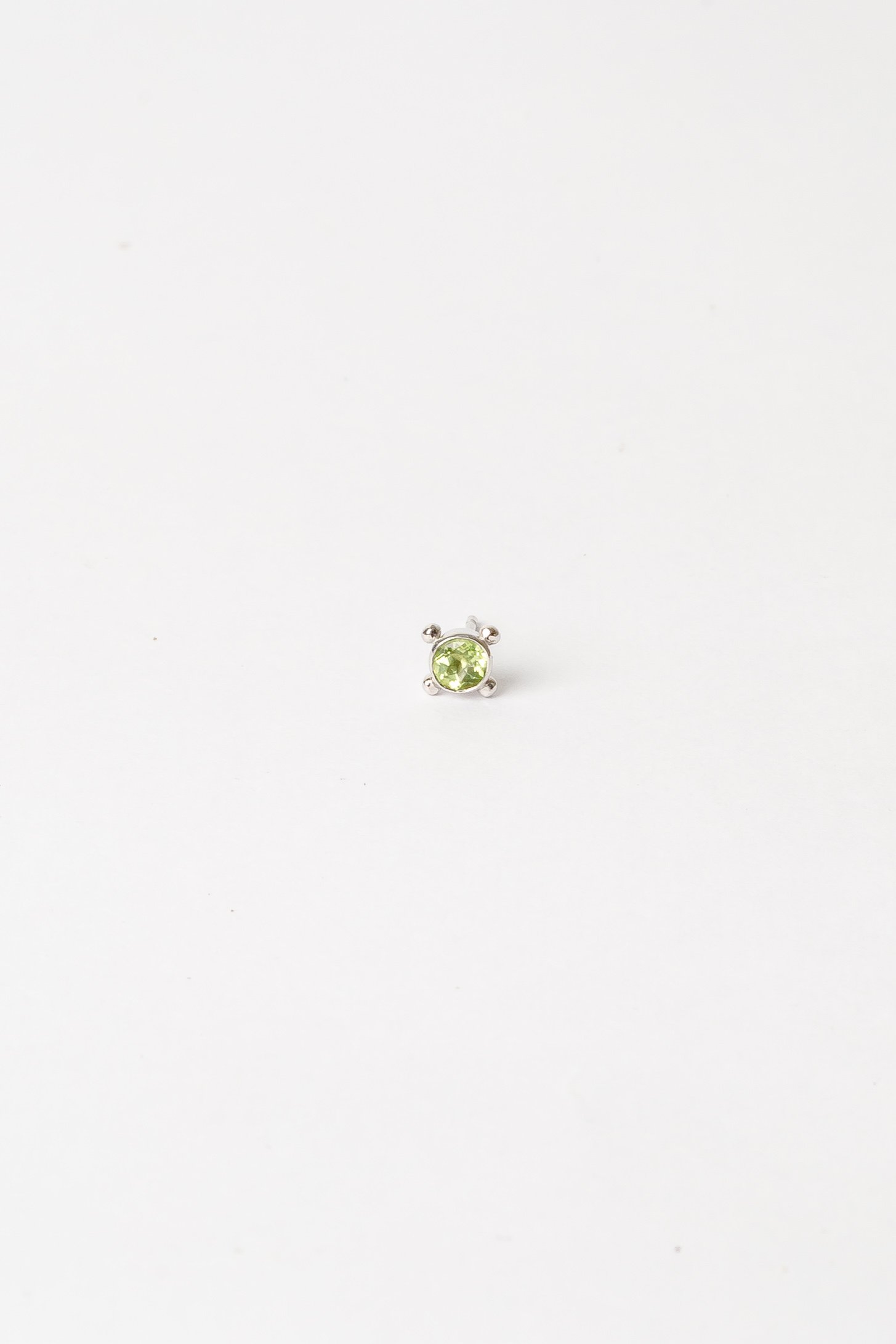Brinco de prata, para uso como piercing ou segundo furo, vendido avulso. Pedra peridoto em lapidação facetada e banhado a rodio branco. Atenção: brinco vendido apenas a unidade, e não o par.