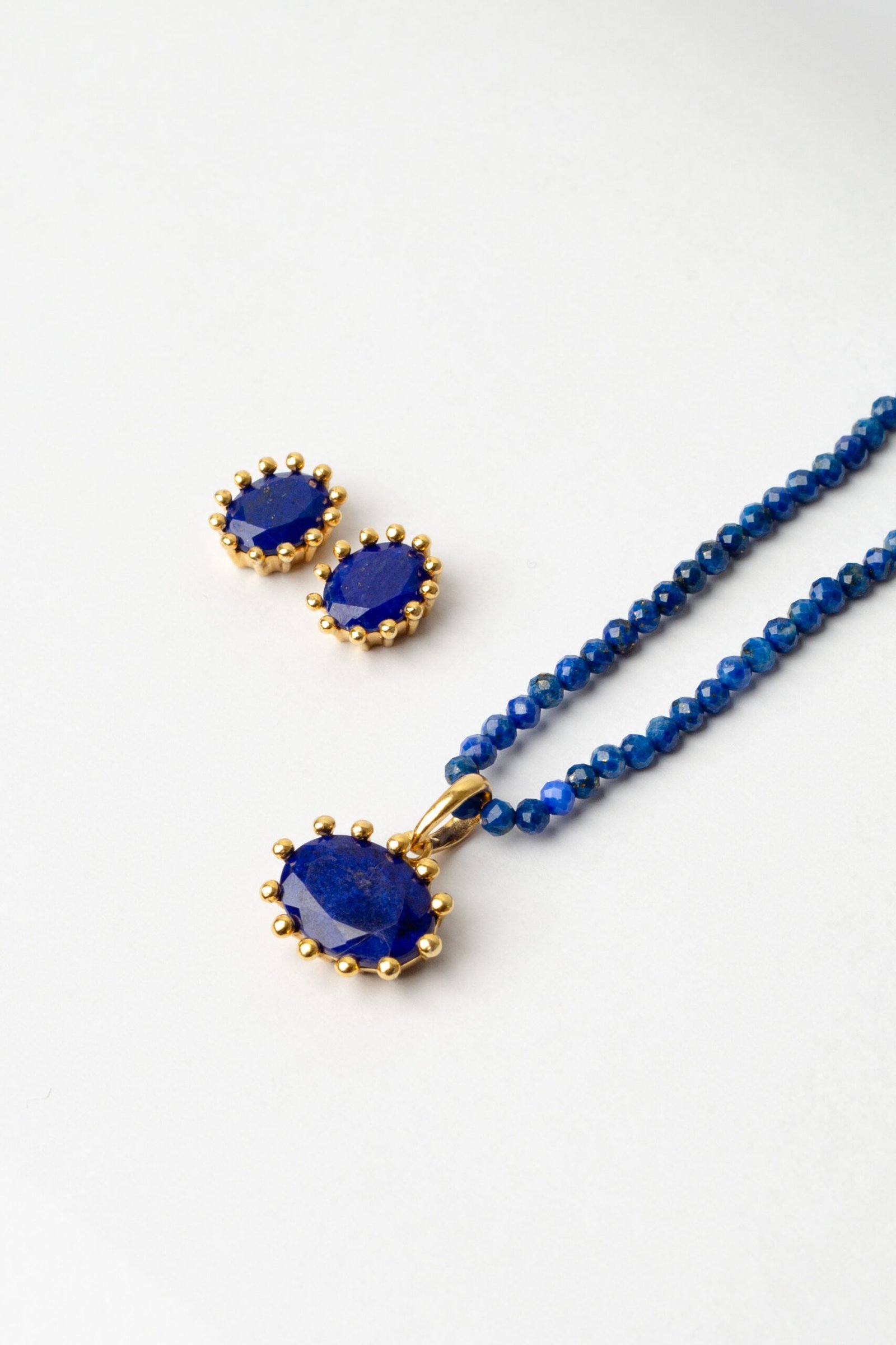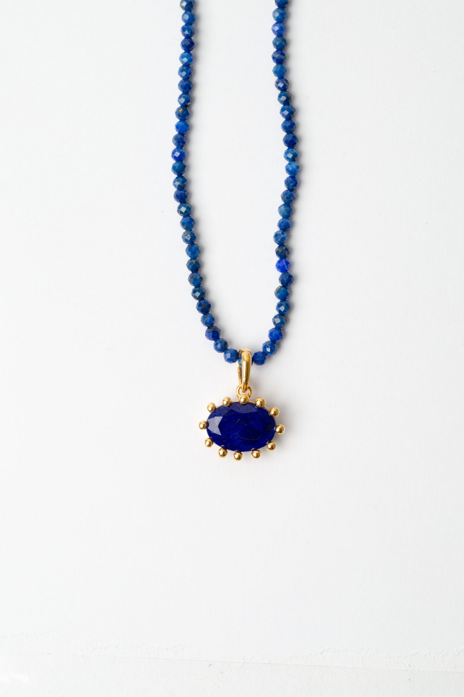 Colar de Lápis Lazuli Curto, com Pingente de Lápis Lazuli, banhado a Ouro 18k.